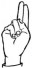 На ћирилици написано ВУКОСЛАВ ВАСИЉЕВ састоји се из 15 слова [?]. Исписано ћириличном једноручном азбуком за глувонеме: